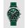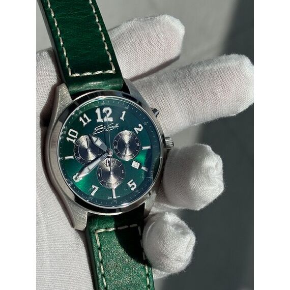 10 ATM, 6-hand Swiss chronograph with 4:00 date window, 30-minute register, Stainless steel case with hand stitched green leather strap, Green Two-tone sunray finish dial with diamond cut eyes, Luminous dial and hands, Sapphire crystal, Case diameter: 41 mm Case diameter: Gift Box, 1 year limited warranty
