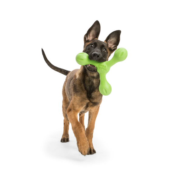 This uniquely shaped fetch toy is designed for interactive play, combining durability, flexibility, and a three-lobe design that makes it easier to throw, tug, and carry — while keeping your hands safely away from eager teeth.